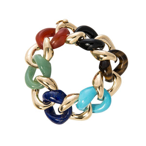 Seaman Schepps Classic Medium Link Bracelet features curb links in mixed gemstones and 18K yellow gold.