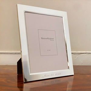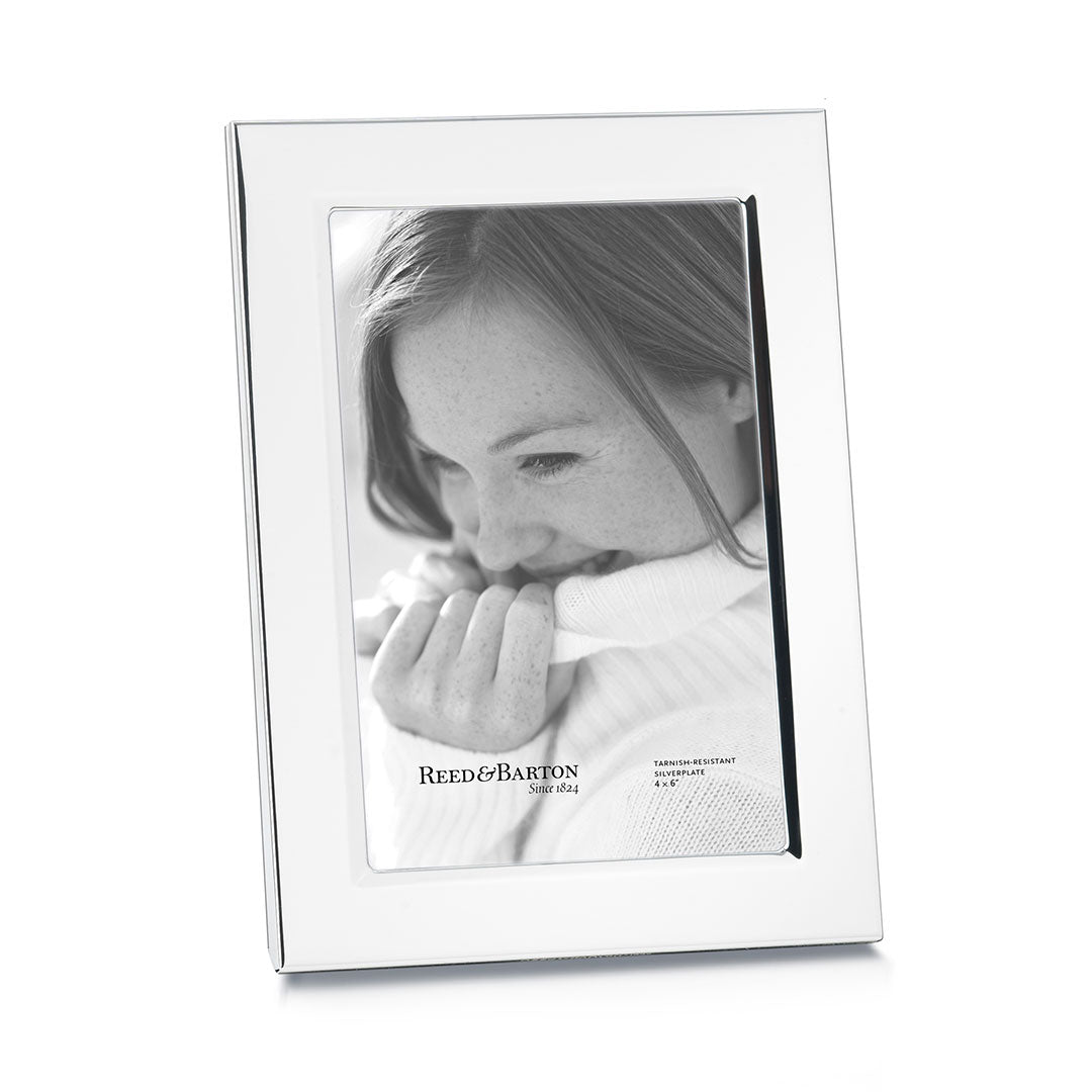 This classic picture frame features a smooth, sleek silver-plated exterior. The frame has an easel back and can be displayed vertically or horizontally.