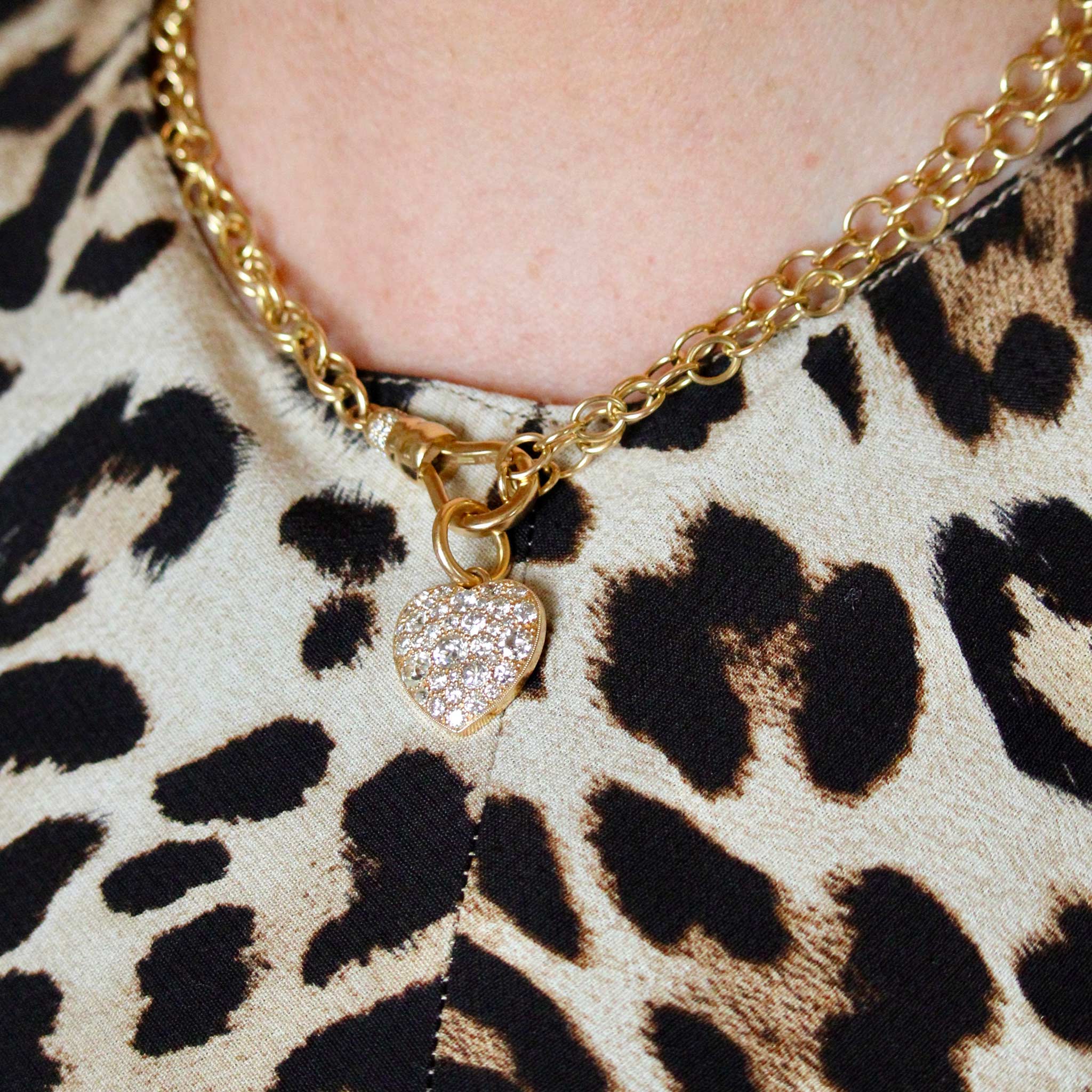Single Stone Medium Cobblestone Heart Pendant features various old cut and round brilliant cut diamonds pavé set in a handcrafted polished 18K yellow gold heart pendant.