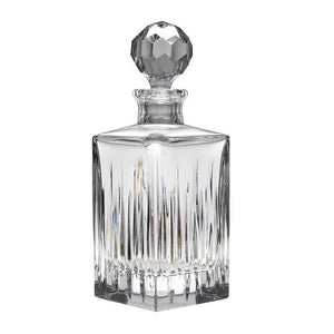 This Soho Square Whiskey Decanter features a cut pattern of bold vertical lines that draw the eye upwards to the sparkling faceted stopper.
