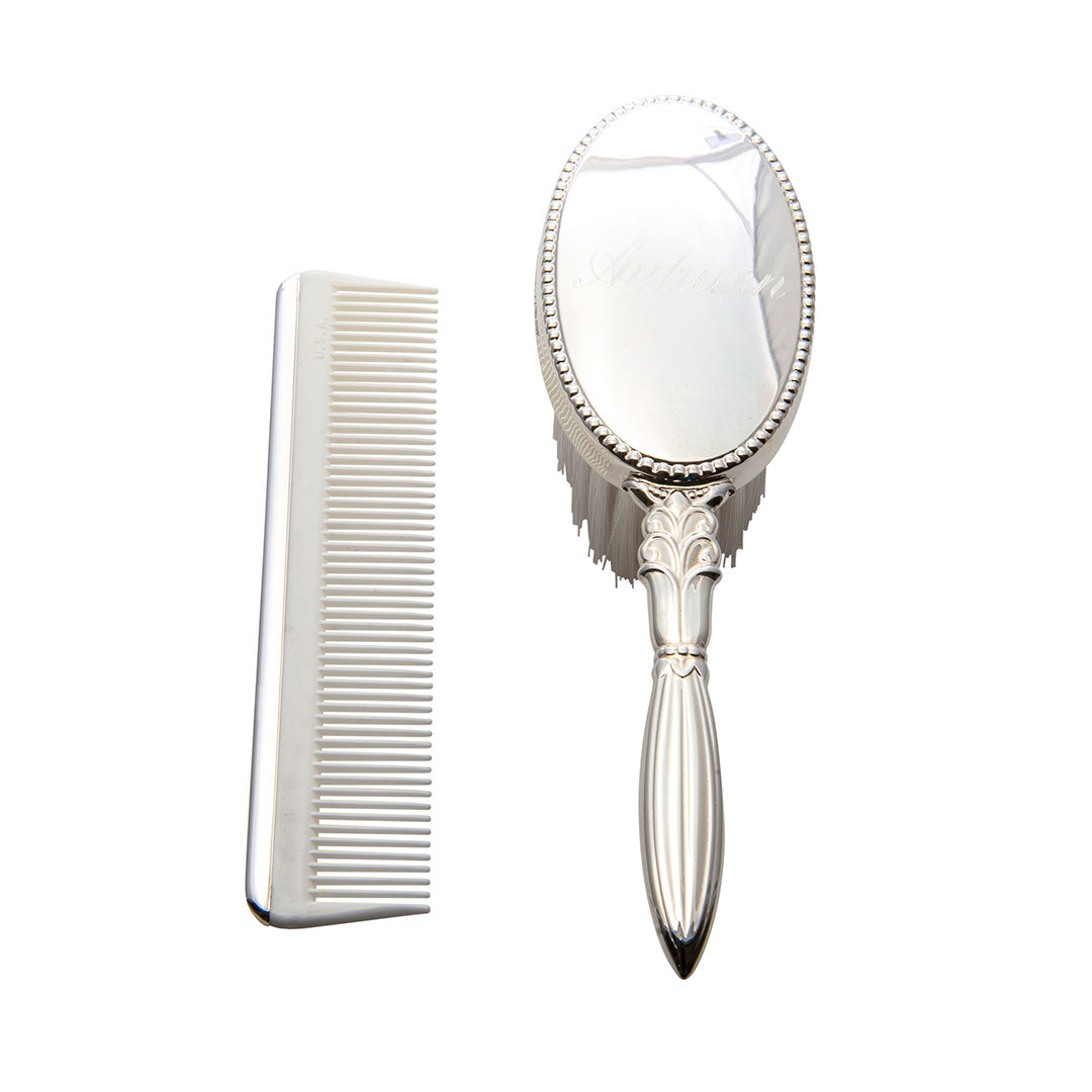 This sterling silver girl's plain oval design hairbrush and comb set is handcrafted to be treasured as a timeless heirloom. With proper care and handling, sterling silver will last a lifetime.