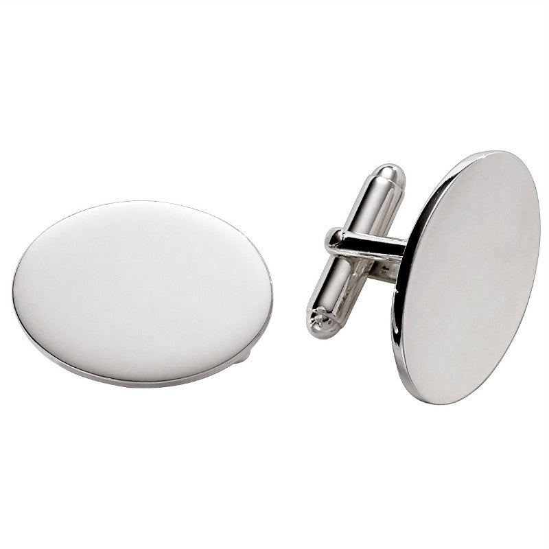 A pair of plain polished sterling silver large oval-shaped cuff links.