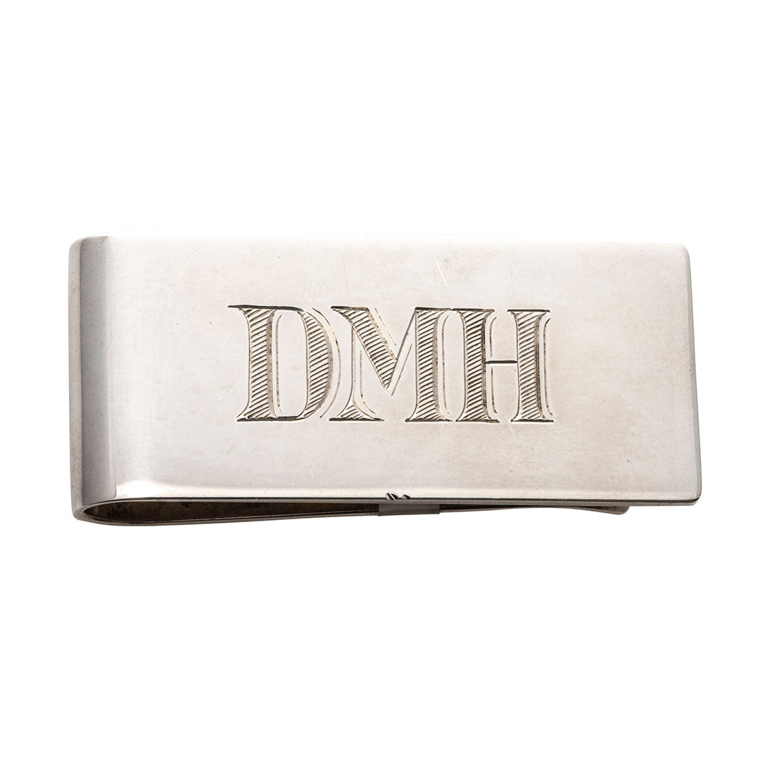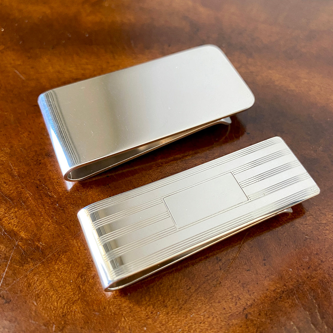 This is a plain, polished sterling silver money clip.