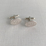 A pair of plain polished sterling silver small oval-shaped cuff links.