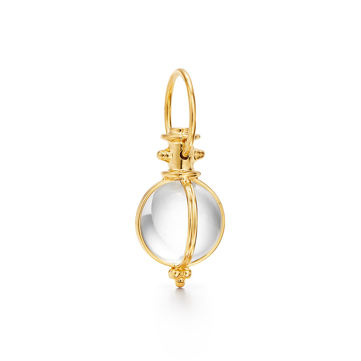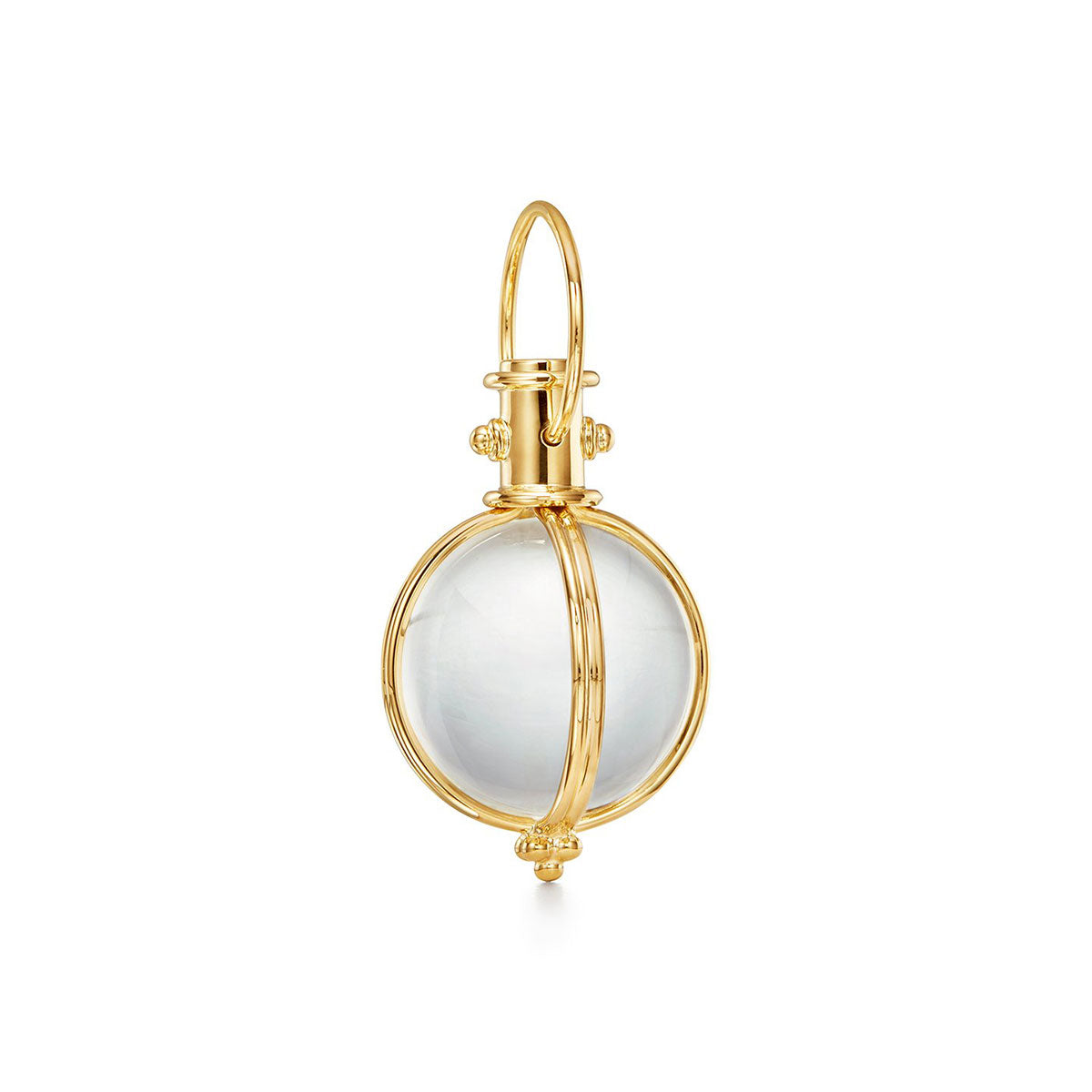 Temple St. Clair Classic Round Rock Crystal Amulet features a finely polished round-shaped rock crystal centerpiece in delicate 18K yellow gold bands with the signature triple gold granulation. Chains are sold separately.