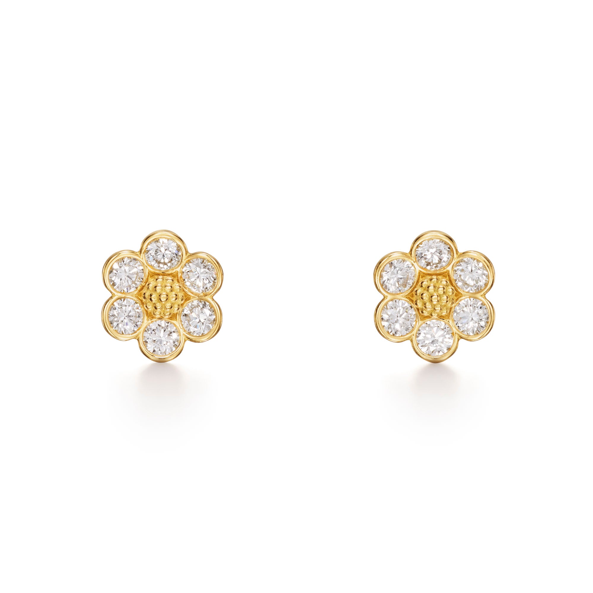 Temple St. Clair Fiori Stud Earrings feature flowers with brilliant cut diamonds surrounding a delicate gold granulation center.