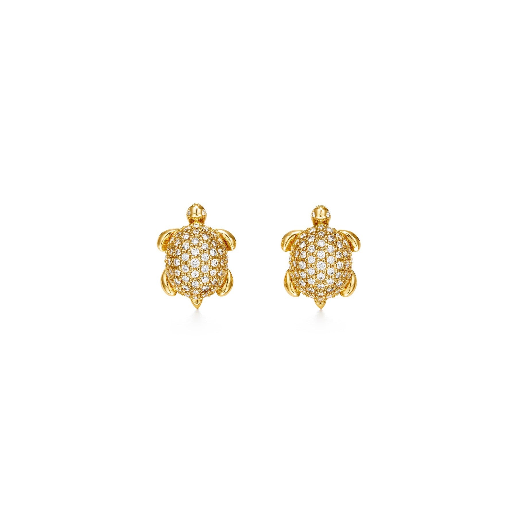 Temple St. Clair Turtle Earrings feature two golden turtles with pavé diamond shells. These earrings are part of the Tree of Life Collection, celebrating all creatures that roam the land, sea, and skies.