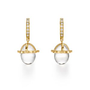 Temple St. Clair Granulated Amulet Drop Earrings feature polished natural rock crystals, signature gold granulation, and pavé diamond accents.