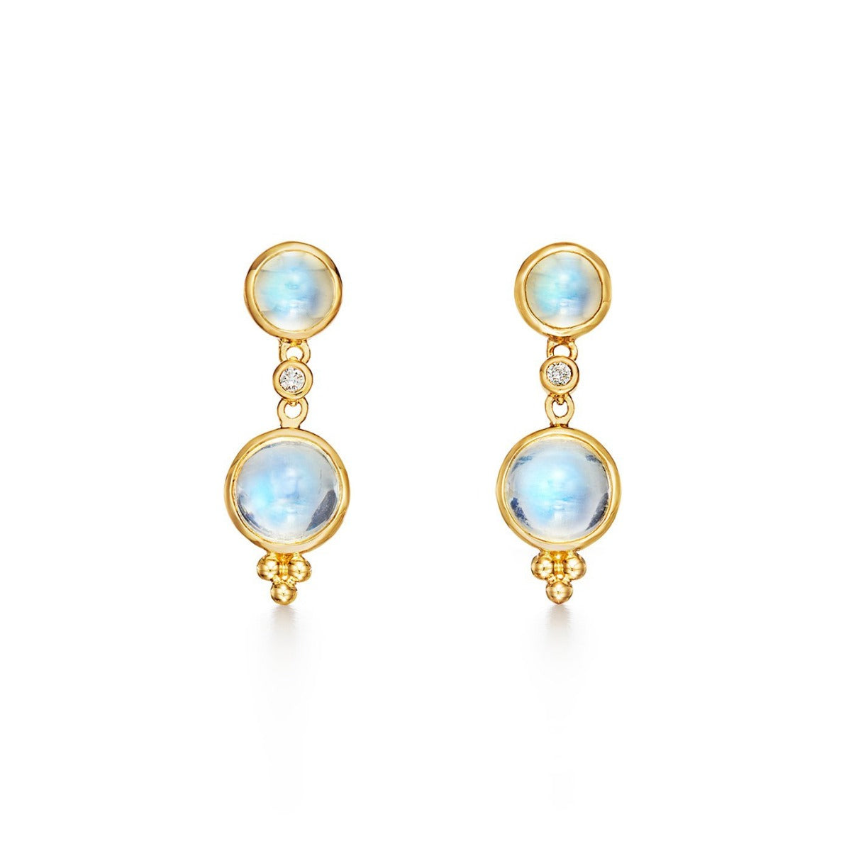 Temple St. Clair Double Drop Earrings feature cabochon blue moonstones and diamond accents.
