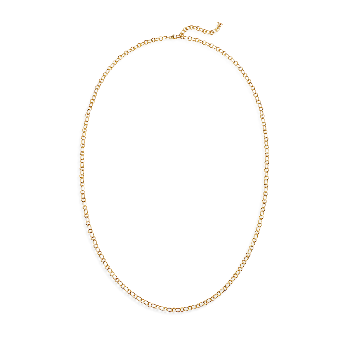 Temple St. Clair Ribbon Chain Necklace features a cascade of elegant oval and round links crafted in signature yellow gold and finished with the Temple charm. The lobster clasp fits on all links, offering different lengths for even more versatility. This chain is the perfect home for amulets, angels, or other pendants, sold separately.