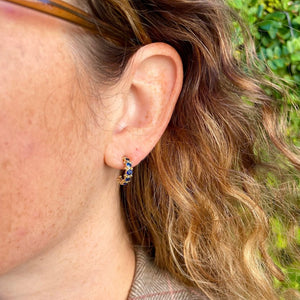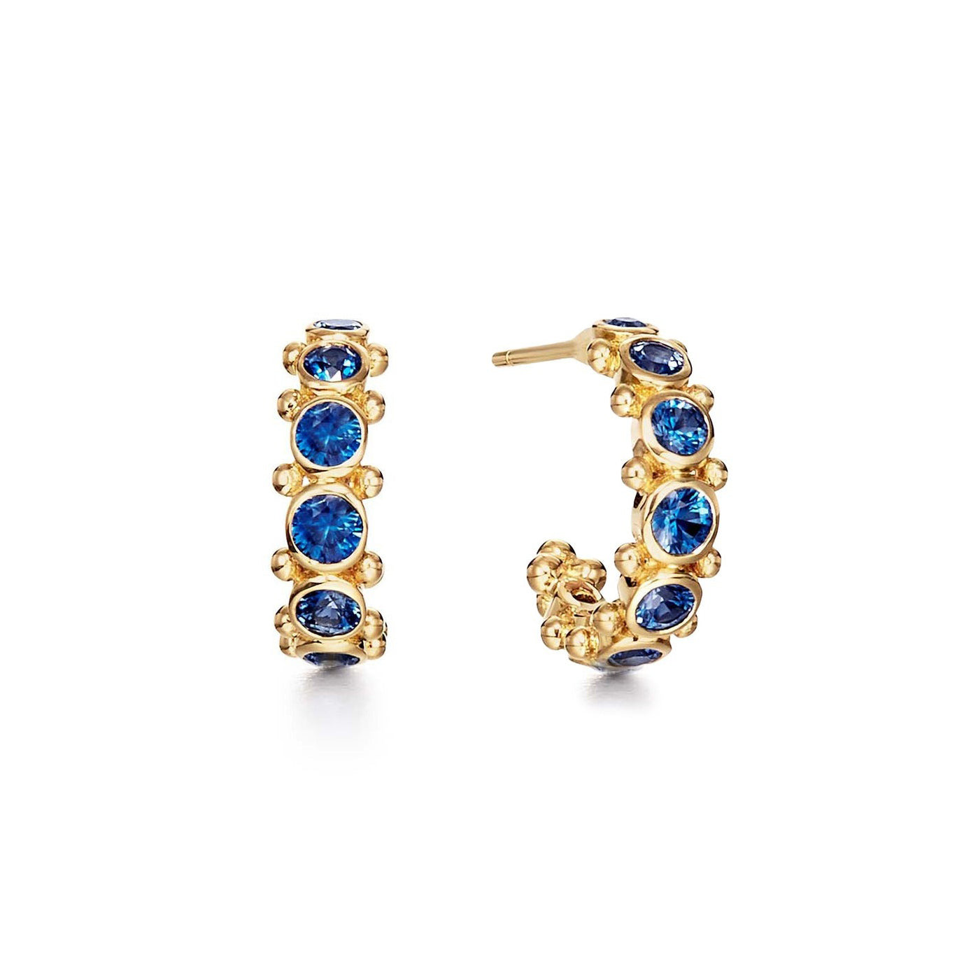 Temple St. Clair Eternity Hoop Earrings feature round sapphires and signature gold granulation.
