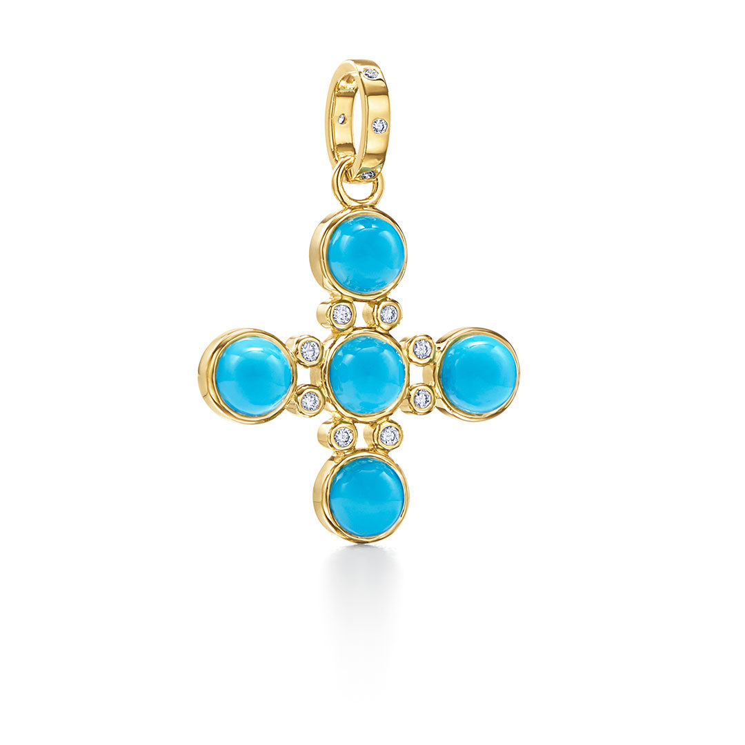 Temple St. Clair Small Four Elements Cross Pendant features turquoise stones and diamond accents.