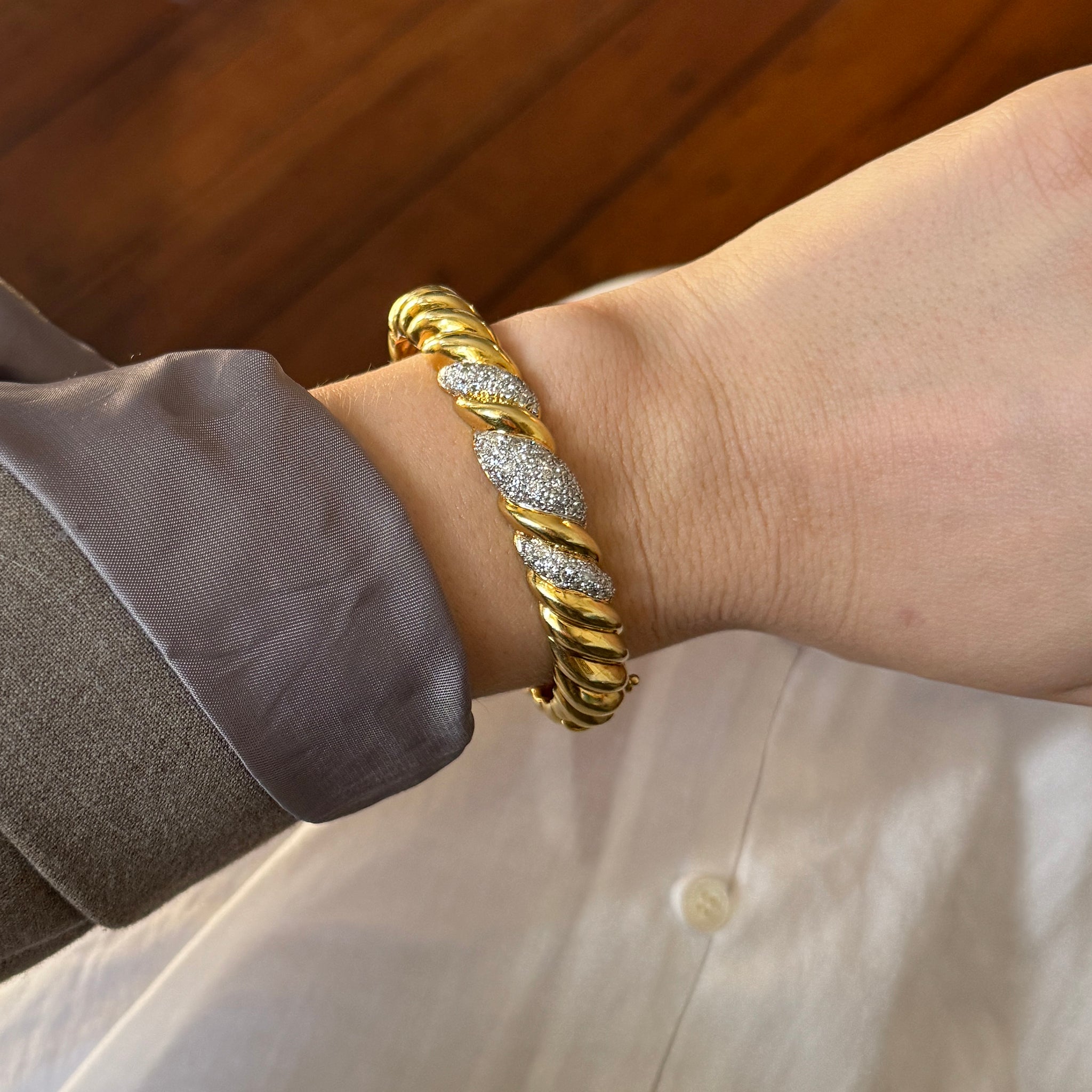 Vintage 1ctw Diamond Pavé 18K Gold Twist Bangle
